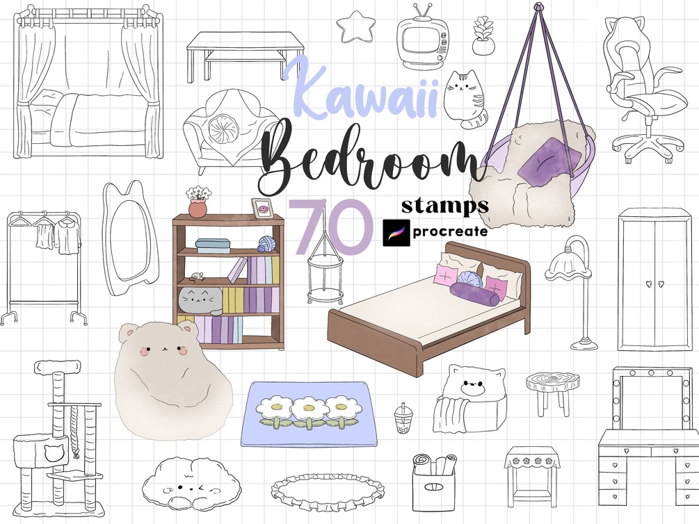 Procreate Kawaii Bedroom Stamp Brushes Kawaii Room Maker
