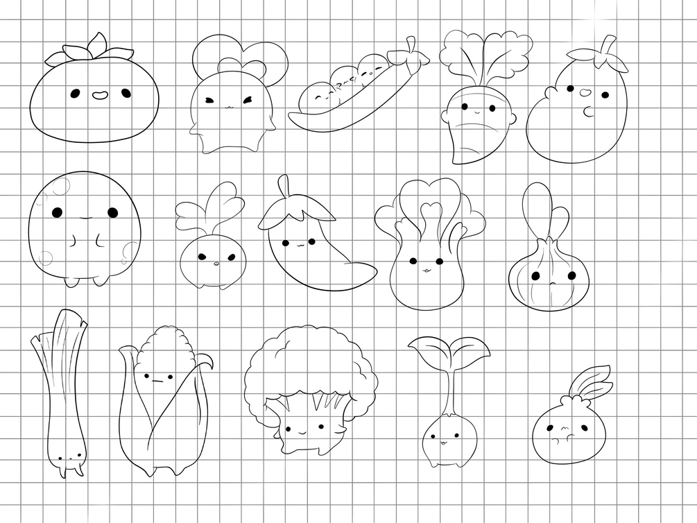Set of 50 hand drawn cute vegetable and fruit stamp brushes, not drawn by ai! These are perfect for adding to your cartoon, anime, kawaii, mix and match or other illustration projects. You can use these in any color or opacity, and they can be resized to best fit your art.