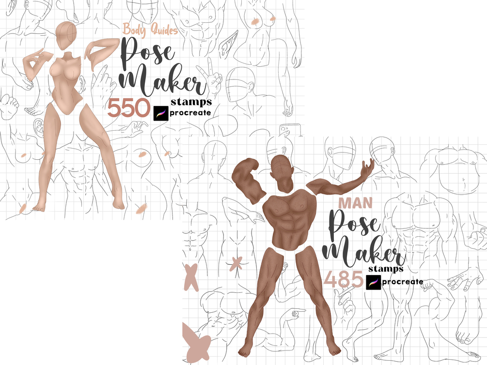 Procreate Pose Maker Stamps Manga Base Clip Studio Anime Body Guides